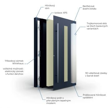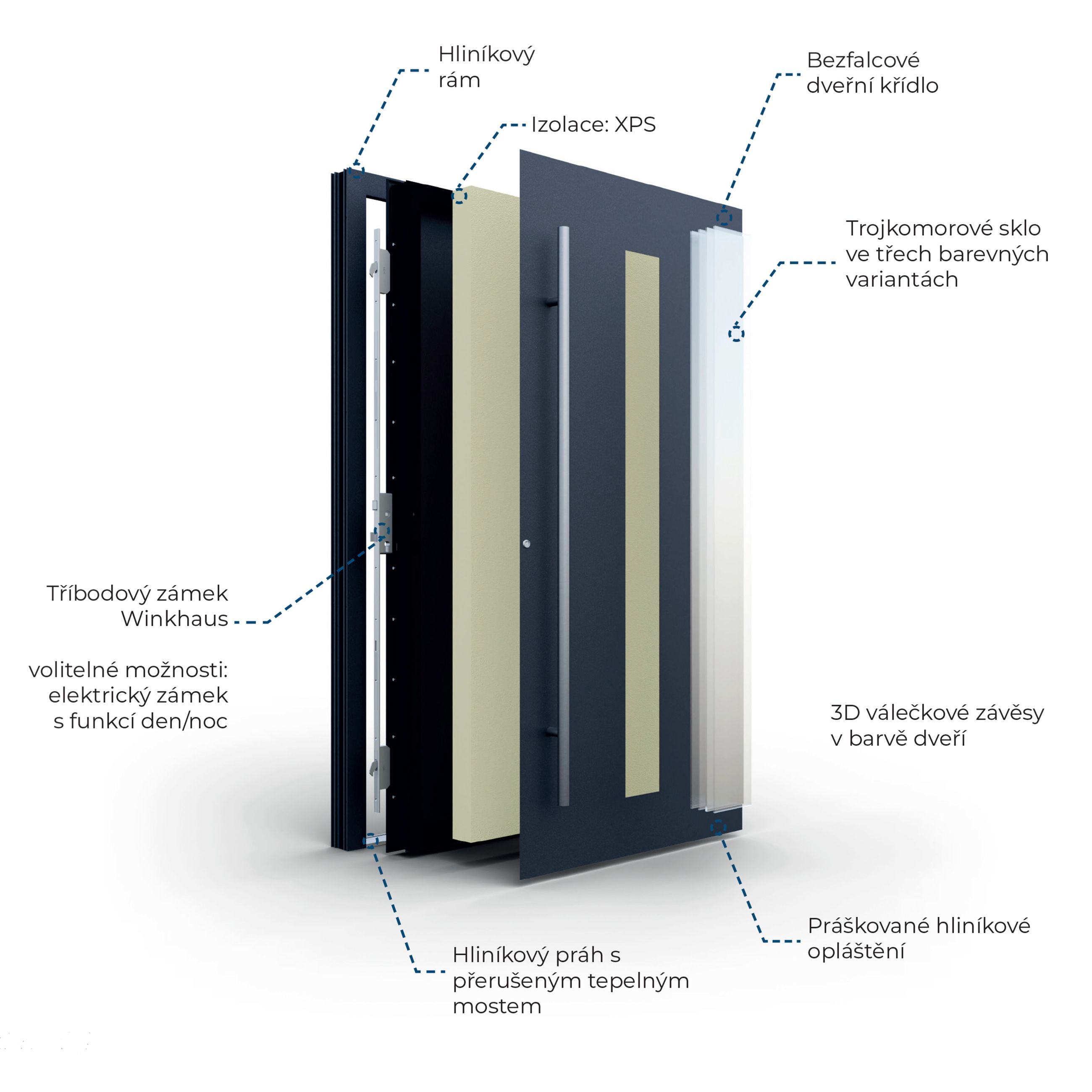 SOUČINITEL PROSTUPU TEPLA: BEZ SKLA Ud – 0,8 W/m2K, SE SKLEM Ud – 0,98 W/m2K